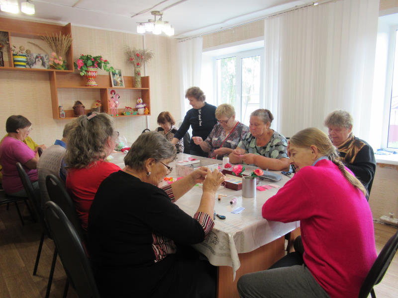 В кабинете трудотерапии ГБУ «ЦСОГПВИИ Лысковского м. о.» прошло занятие по изготовлению роз из атласных ленточек. Инструктор по трудотерапии Т.В. Батракова занятие начала с рассказа как сделать цветочек - розу, что для этого необходимо и с чего начинать. Далее получатели социальных услуг приступили к самостоятельной деятельности. В результате получились красивые панорамы из цветов.