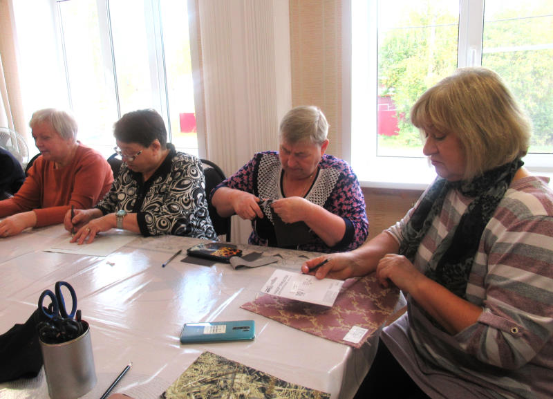 На занятиях  трудотерапии отдыхающие отделения дневного пребывания ГБУ «ЦСОГПВИИ Лысковского м. о.»  занимались изготовлением сумочки для телефона. Каждый декорировал своё изделие цветком из лент. Сумочки получились красивыми, а главное удобными и необходимыми для хранения телефона.