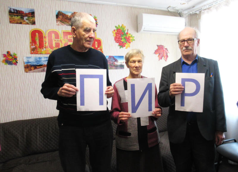 Есть много разных игровых программ, среди них есть и игры на движение. Берётся одно большое слово, и из него образуем новые слова, путём перестановки букв местами. Отдыхающие пенсионеры отделения дневного пребывания, получив карточки с буквами, из слова «Пенсионер» составляли новые слова. А их в результате получилось 20!