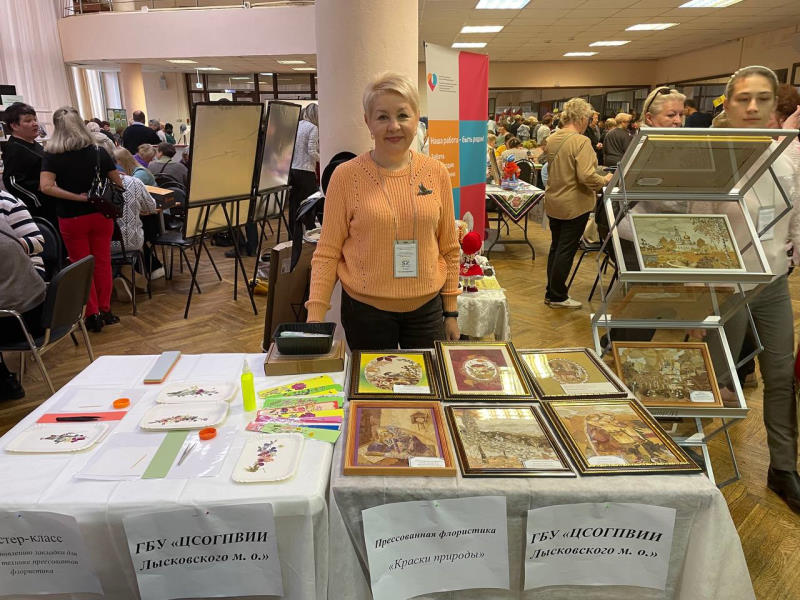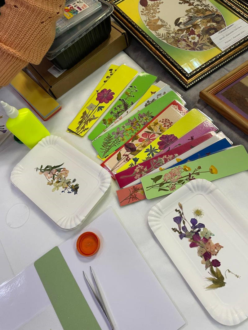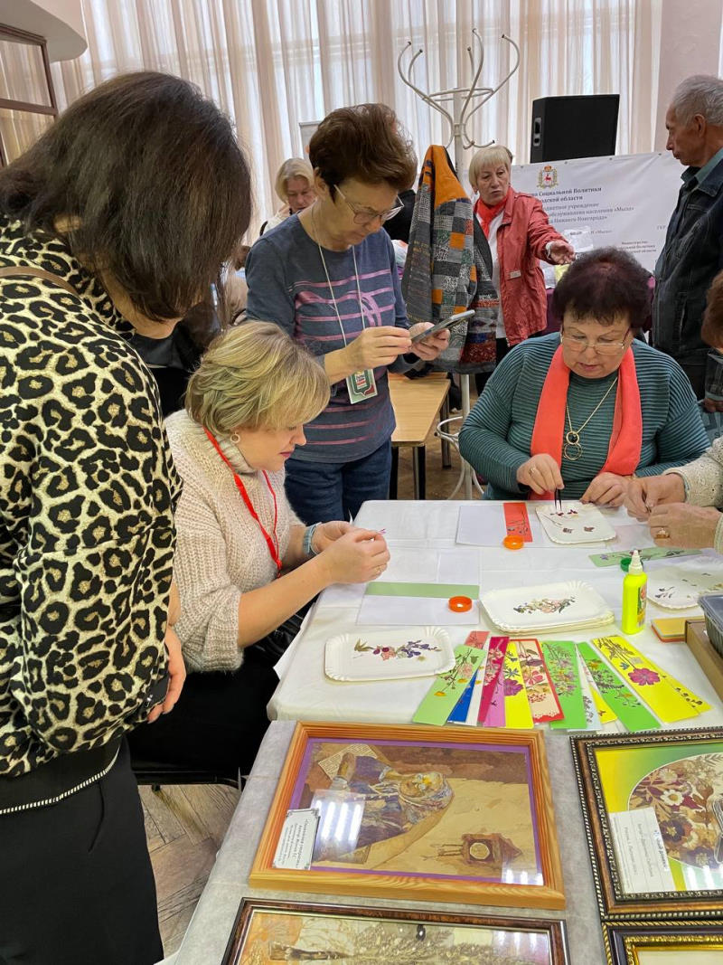 Сотрудники ГБУ «ЦСОГПВИИ Лысковского м. о.» совместно с мастером флористом МБУК РЦНПРТ «Рассвет» Е. Фроловой на данном мероприятии провели для граждан пожилого возраста мастер-класс по изготовлению закладки для книг в технике прессованная флористика. А в зоне творчества были представлены картинные работы граждан, сделанные в той же флористической технике под названием «Краски природы».