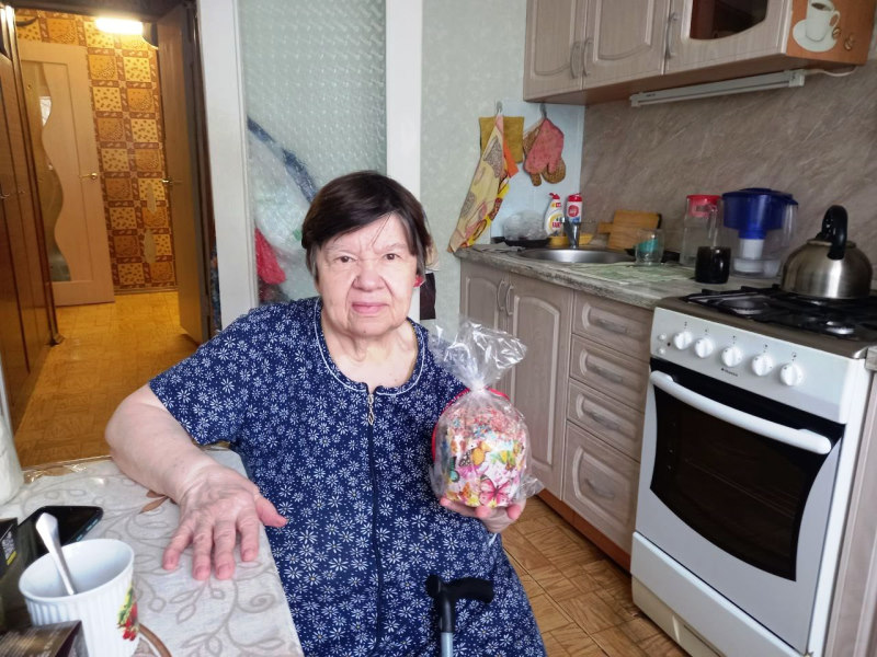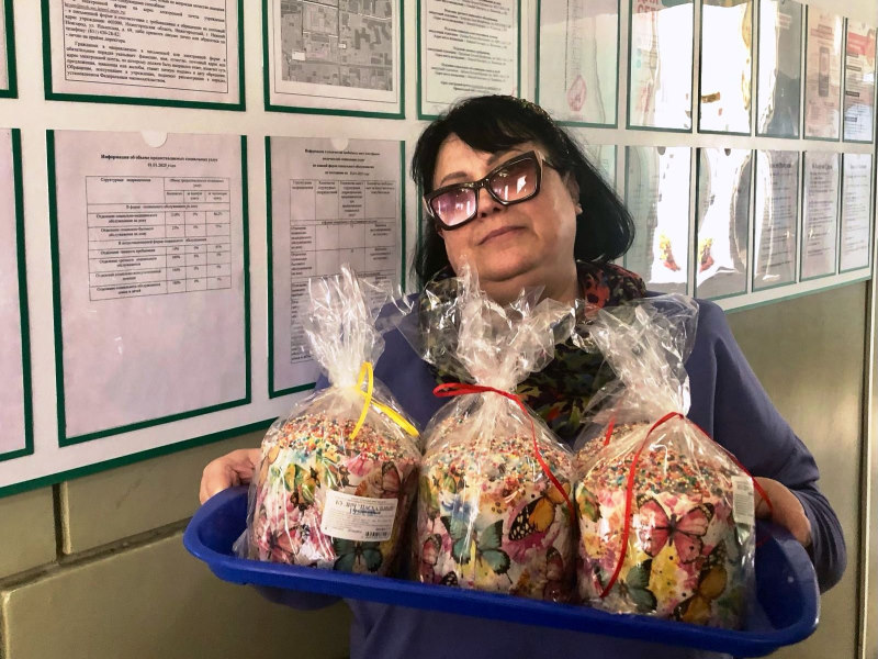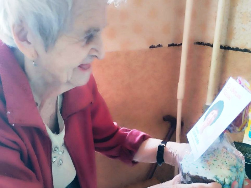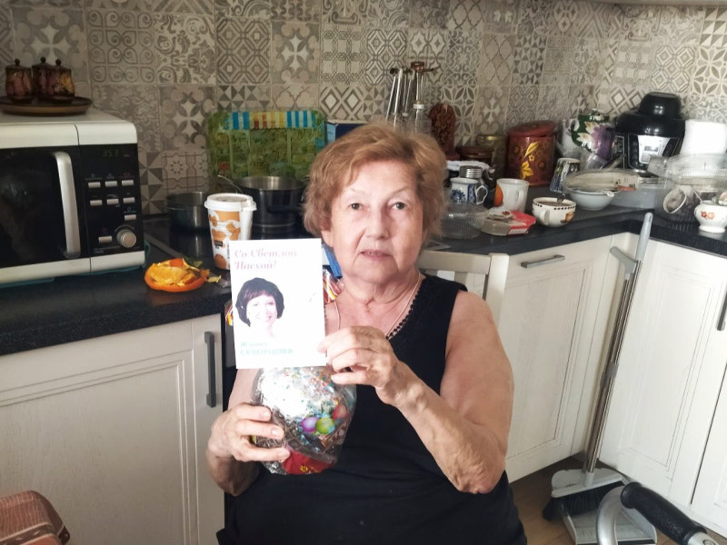 А наши социальные работники с большой любовью и заботой присоединяются к этой акции, поздравляют своих подопечных с наступающей Пасхой и доставляют им вкусные, сдобные и румяные куличи.