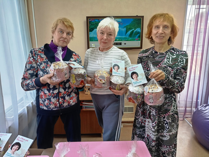 Одним из основных атрибутов Светлой Пасхи для всех христиан является - кулич. Вот и в нашем учреждении уже стало традицией, что в преддверии праздника Светлой ПАСХИ, депутаты городской Думы Жанна Александровна Скворцова, Елена Валерьевна Аржанова, Оксана Владимировна Дектерева и Ольга Валерьевна Балакина оказывают благотворительную помощь в приобретении куличей для пенсионеров, инвалидов и ветеранов ВОВ, состоящих на надомном обслуживании в социально-медицинском и социально-бытовом отделениях учреждения.
