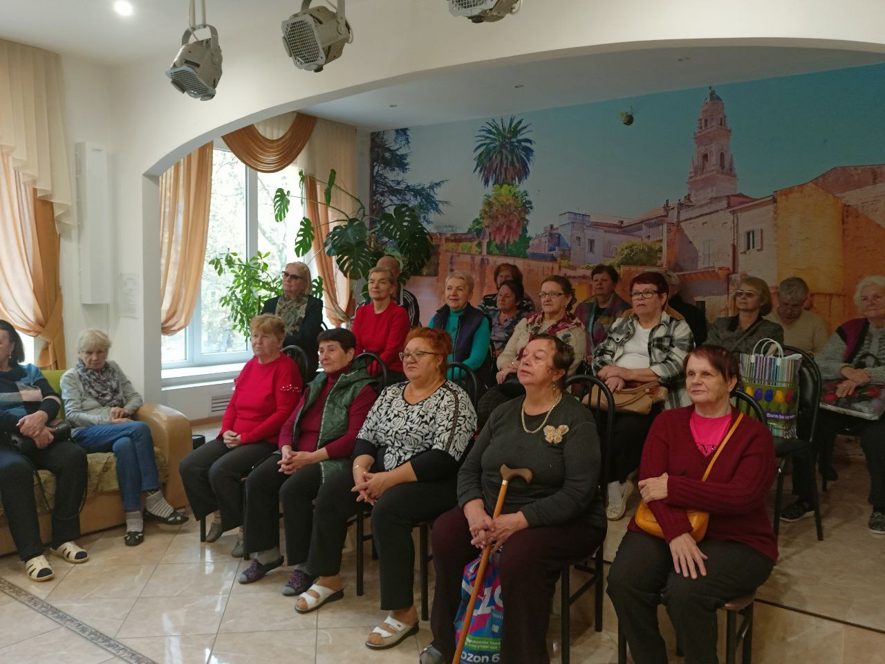 В отделении дневного пребывания выступил замечательный дуэт "Живи и радуйся" — Ольга Потёмкина и Татьяна Данилова! Их талант и душевность никого не оставили равнодушными. В их исполнении прозвучали трогательные стихи и песни о любви, а также о "золотой" осени, которые создали невероятную атмосферу тепла и уюта. ![]()